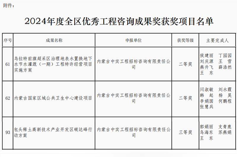 2025-04-168392 次2025年4月16日,内蒙古工程咨询协会公布了2024年度优秀咨询成果奖获奖单位名单,我司取得两个二等奖和一个三等奖,我司专业能力和服务质量再次获得行业的认可。此次获奖,不仅体…