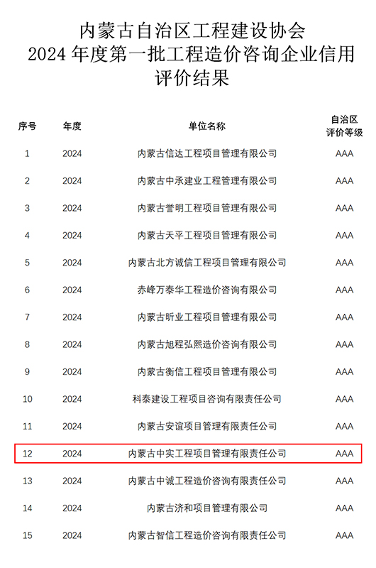 2024-07-3015142 次近期,我公司参加内蒙古自治区工程建设协会组织的“2024年度第一批工程造价咨询企业信用”申报,获得“信用AAA级证书”。我公司成立多年以来,遵循中国工程造价管理协会对造价咨询企…